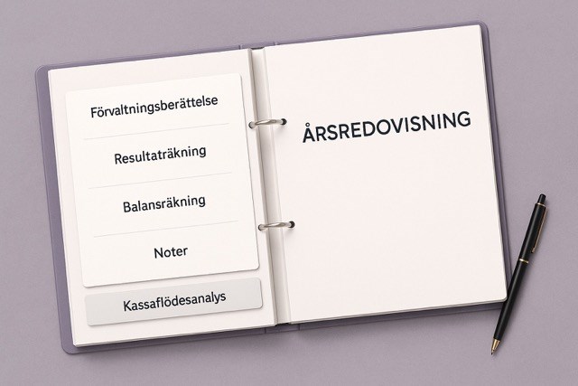En årsredovisning upprättad enligt årsredovisningslagen ska innehålla en förvaltningsberättelse, resultaträkning, balansräkning och noter. Större företag och bostadsrättsföreningar måste även ha en kassaflödesanalys. Här får du en genomgång av alla delar och var du hittar stöd vid upprättande av årsredovisning.